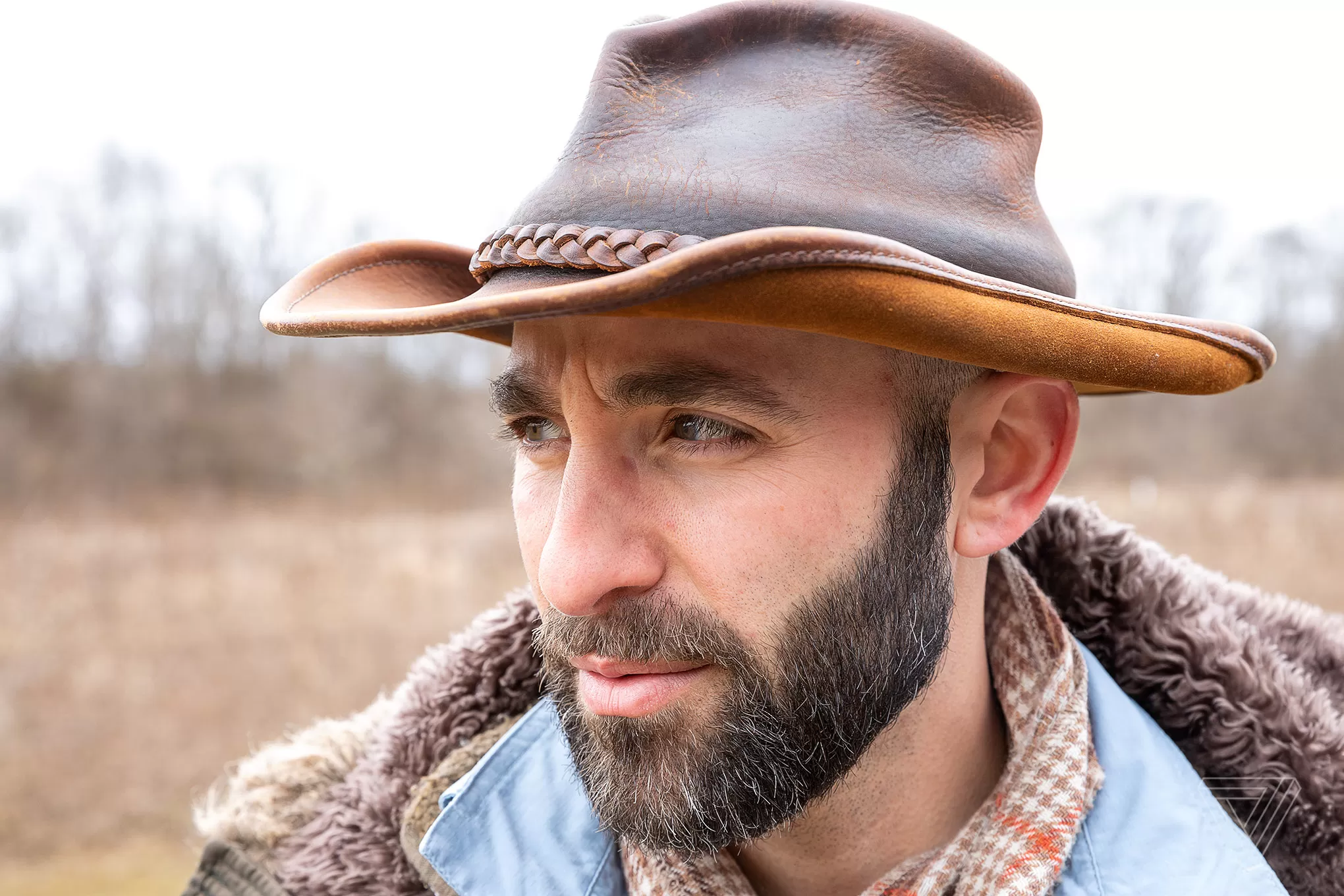 Nathaniel 'Coyote' Peterson in profile, focused on something in the muddy ground, reflecting the detailed observation needed in the coyote brave wilderness.