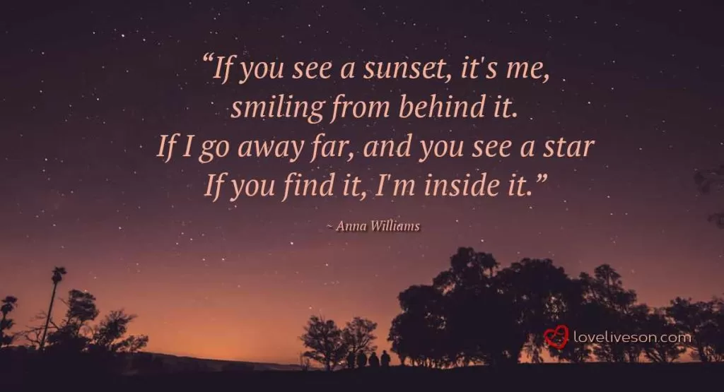 Do not stand at my grave and weep; I am not there, I do not sleep. I am a thousand winds that blow. I am the diamond glints on snow. I am the sunlight on ripened grain. I am the gentle autumn rain.