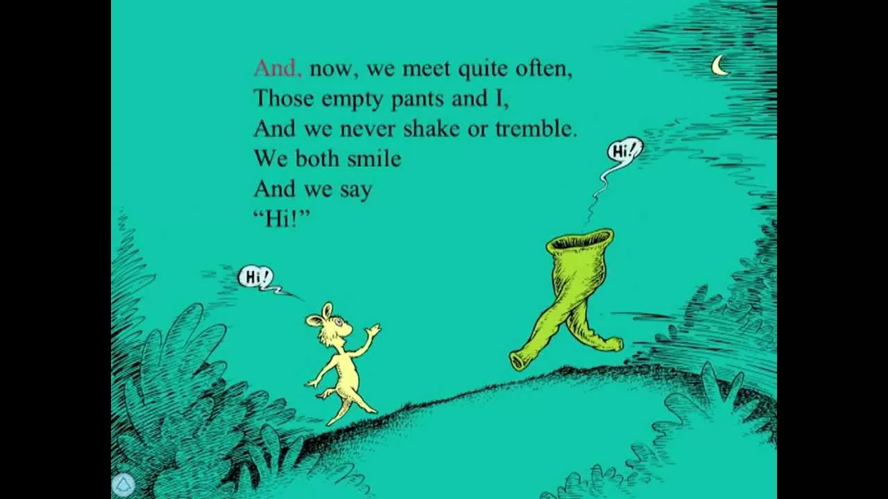 Ein Gedicht, das Seuss‘ Fähigkeit, das Skurrile mit echten, nachvollziehbaren Emotionen zu verbinden, perfekt verkörpert, ist „Die blassgrüne Hose“ (im Original „The Pale Green Pants“). Dieses narrative Gedicht, aus der Ich-Perspektive erzählt, nimmt eine scheinbar absurde Prämisse – ein Paar leerer Hosen, die herumlaufen – und nutzt sie, um die Angst und die unerwartete Natur der Verbindung zu erforschen.