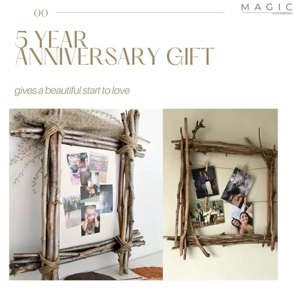Un marco de fotos de madera rústico y hecho a mano añade un toque personal a sus recuerdos favoritos. Muestre una foto preciada de ustedes dos para conmemorar sus cinco años juntos.