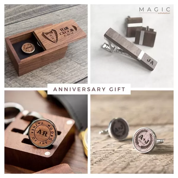 Para el hombre sofisticado, los gemelos de madera grabados añaden un toque de elegancia a cualquier atuendo formal. Personalícelos con sus iniciales o una fecha importante para un regalo verdaderamente especial y memorable.