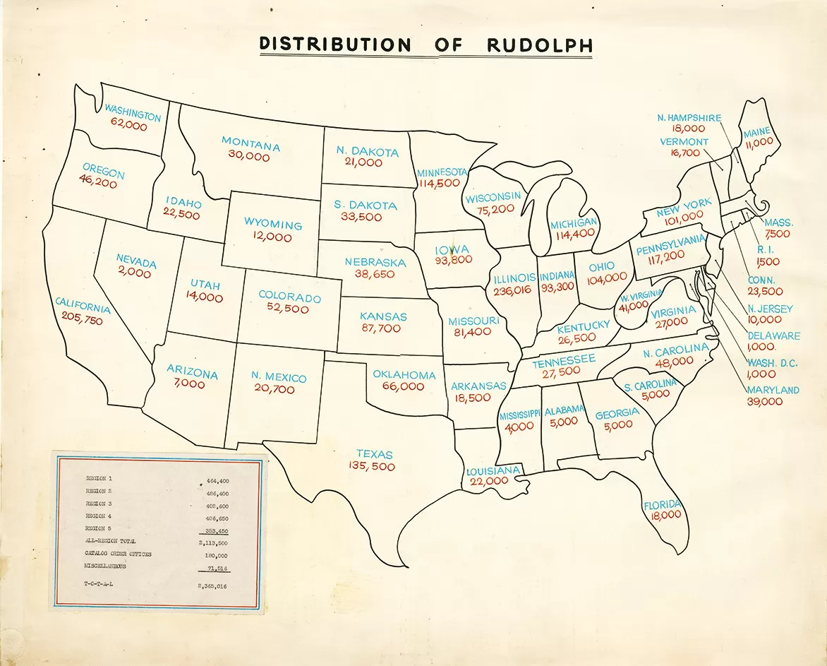 El libro terminado fue un éxito masivo. Montgomery Ward distribuyó más de dos millones de copias de la historia Rodolfo el Reno de Nariz Roja esa temporada navideña por todo el país.