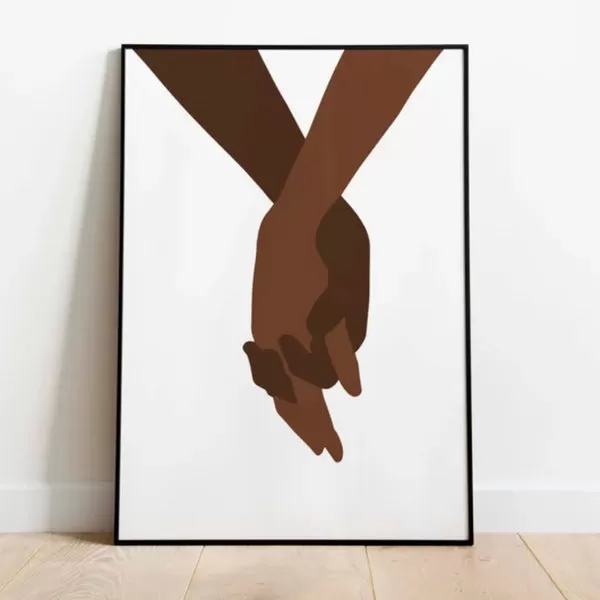 Affiche encadrée montrant les mains d'un couple entrelacées