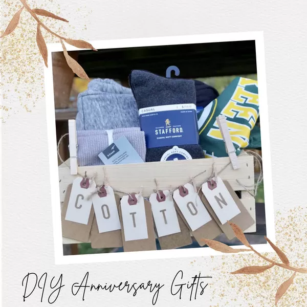 Pour un cadeau de deuxième anniversaire (traditionnellement en coton), créez un panier cadeau thématique. Remplissez-le d’articles en coton doux comme une couverture confortable, des serviettes luxueuses ou un t-shirt personnalisé. Ce cadeau pratique et attentionné célèbre le « tissu de vos vies ».