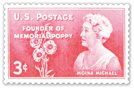 Timbre représentant Moina Michael, qui a popularisé le coquelicot comme symbole du souvenir.