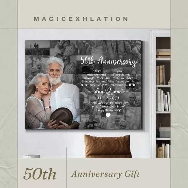 - Une toile d’anniversaire personnalisée : Une impression sur toile personnalisée présentant une photo chère ou une citation significative est un beau et durable rappel de leur histoire d’amour.