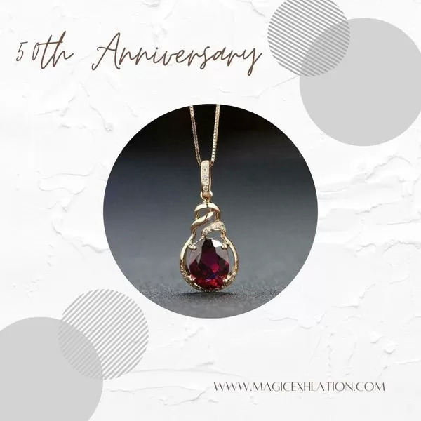 Boutons de manchette dorés - Un pendentif en or : Un cadeau magnifique et élégant pour elle. Un pendentif en grenat, représentant la pierre précieuse traditionnelle pour le 50e anniversaire, ajoute une touche de couleur et de signification.