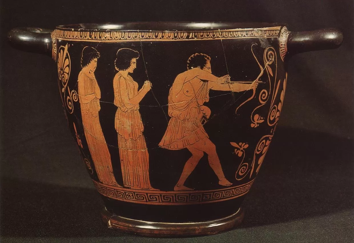 Ceramic with depiction of Odysseus holding bow and arrow in The Odyssey