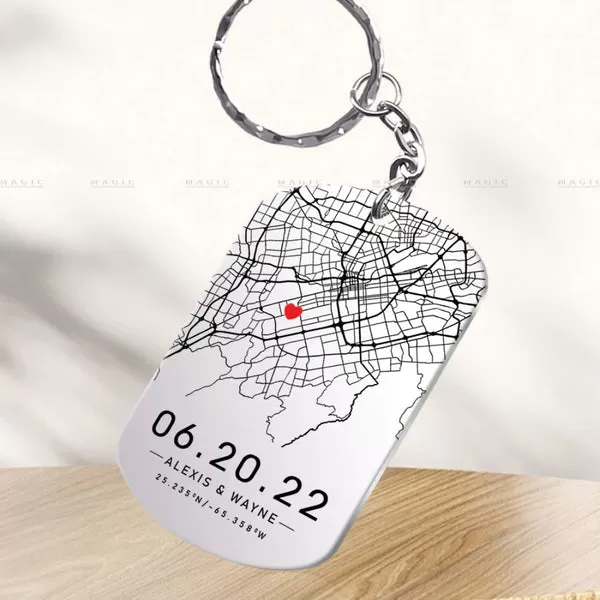 A keychain engraved with a map of your first kiss location is a practical and romantic gift. Every time your loved one reaches for their keys, they’ll be reminded of that special moment.