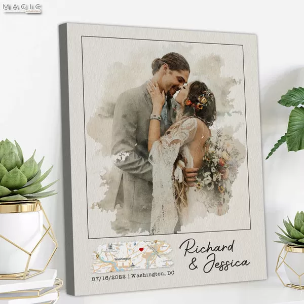 A watercolor painting of your first kiss location combines artistic expression with sentimental value. This beautiful piece of art can be displayed in your home, serving as a constant reminder of your love story.