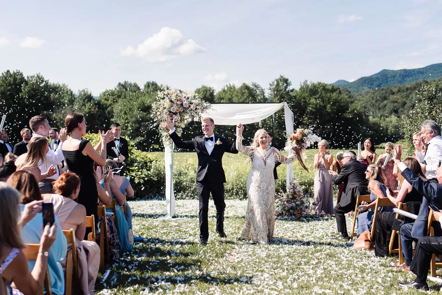 Reading non-religious love poem at summer outdoor wedding ceremony at Topnotch Resort
