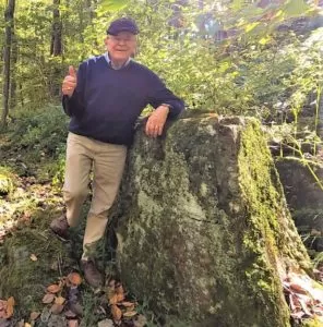Historic Poets' Rock, a large moss-covered stone, near Cuttalossa Creek